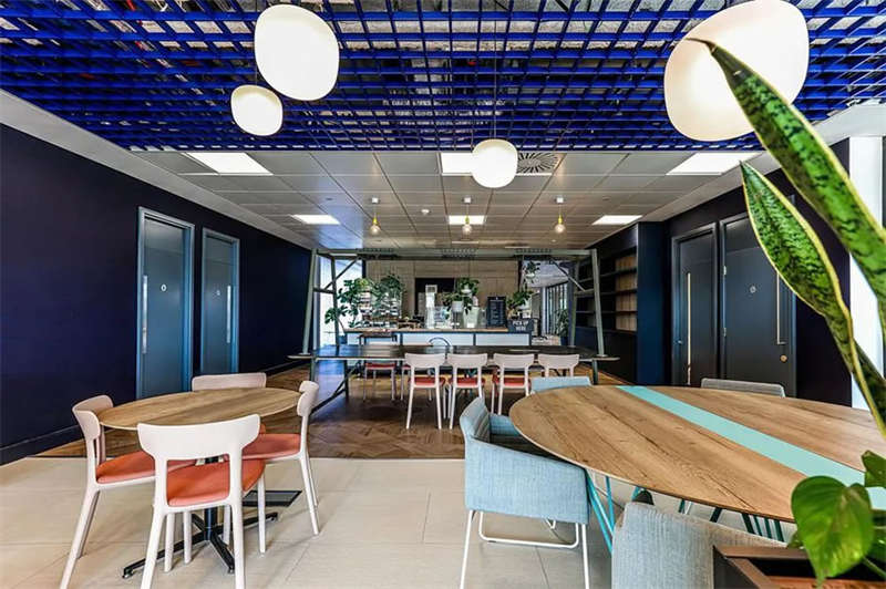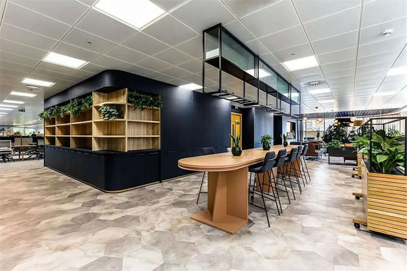 此番改造的一個重要主因是給到員工愿意回歸辦公室的理由。這意味著提升整體設施的實用性和美觀性,同時增加協作空間并整合遠程工作人員的需求。因此對當代前沿科技的投資成為關鍵要素。為了支持混合工作模式,設計公司在早期就任命了一名AV專家,以便可以通過應用程序或基于桌面的預訂系統預訂工作空間。同時,傳統工作站與可替代工作設施之間的界限也進一步擴大,平均(NIA室內凈面積)比率為1:10。此外,之前辦公桌與員工1:1的比例也被新的1:1.6比例所取代。