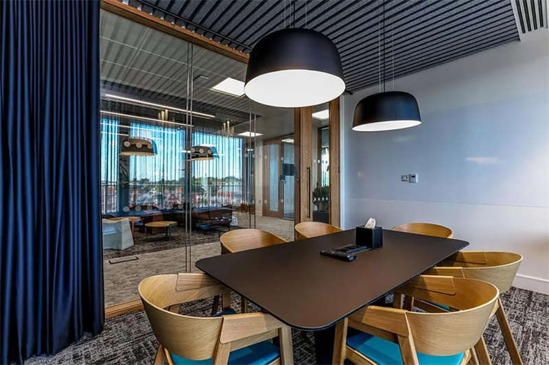 照明方案采用了多種光照的組合形式,以創建自然日光的感覺。對于技術部門來說,重要的是照明不能太高科技感或像一個大燈箱,因此這里使用了軌道照明代替漫射器和聚光燈。會議室以吊燈為主,突出與會人員的面部照明,以及屏幕上方用于遠程通話的燈光,因此,需要更專業的照明設計,以清晰、明亮的映襯和傳遞人物形象。