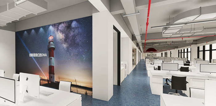 開放式辦公空間設計,可以改進室內的采光,提升室內空間的通透性,促使整體室內空間視線開闊,為職工打造1個寬敞明亮的工作環境。