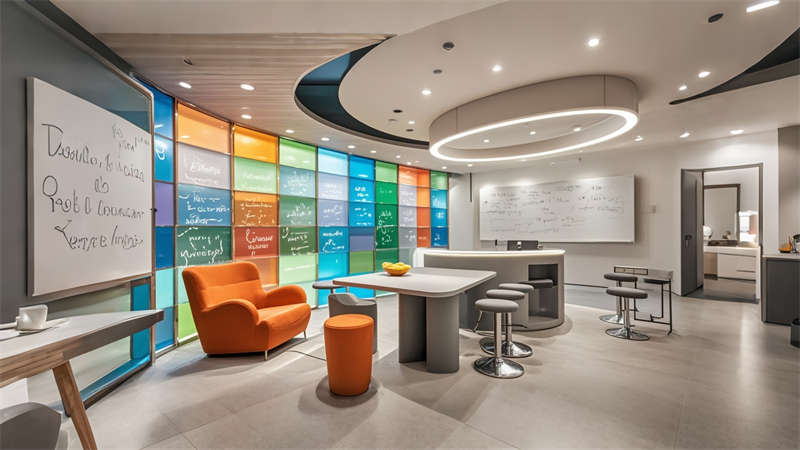 本項目為1800㎡現代簡約風格辦公室整體設計,以 ' 高效?活力?互聯 ' 為核心設計理念。空間規劃采用動靜分區原則,前廳通過淺灰大理石與橙色 logo 的碰撞凸顯企業形象,開放辦公區運用玻璃隔斷保證采光與交流效率。色彩體系以企業標準色淺灰為主調,搭配活力橙點綴,木色中和冷峻感。材質選用環保型穿孔鋁板、防滑地磚和 E0 級板材,集成智能會議系統和隱藏式線管設計。重點空間如高管辦公室采用深胡桃木提升質感,休息區通過波浪吊頂和模塊沙發營造輕松氛圍。照明系統采用 4000K 色溫 LED 線型燈帶,搭配局部裝飾吊燈,確保工作照度與空間美感平衡。全案貫徹人體工學設計,預留 20% 彈性空間適應未來發展需求。