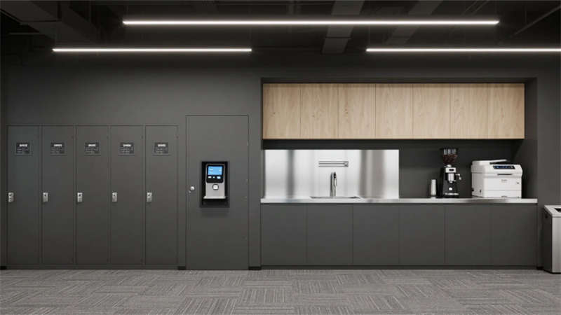 公共支持區以啞光不銹鋼吧臺為中樞,智能儲物柜與嵌入式咖啡機滿足高效辦公需求。極簡會議室采用深灰烤漆會議桌搭配磁性玻璃書寫墻,環形反光燈槽確保無影會議環境。視頻會議室通過U型布局與陣列麥克風優化遠程協作,超窄邊框屏幕墻與電動遮光簾實現智能會議場景切換。