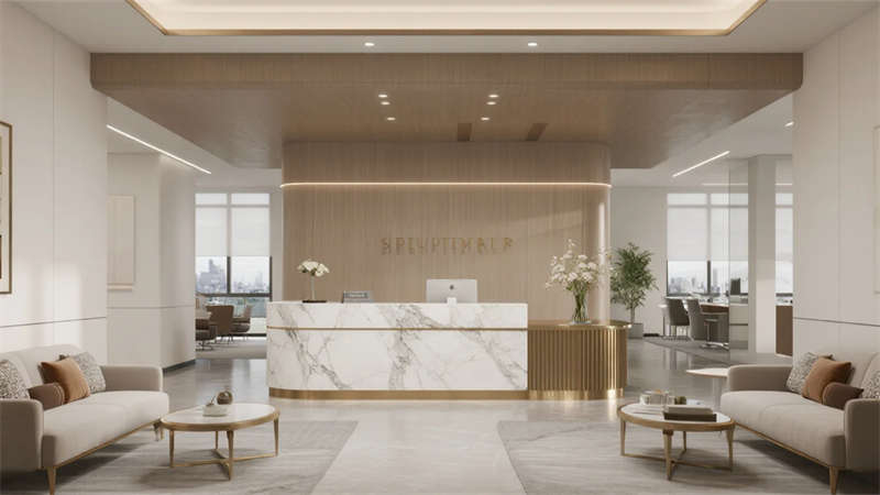 本設計以輕奢風格為核心,打造一個優雅而舒適的辦公環境。外觀采用現代建筑語言,玻璃幕墻與金屬細節相結合,彰顯高端氣質。內部空間注重細節與品質,接待區以大理石前臺和金屬裝飾營造歡迎氛圍,開放式辦公區布局靈活,配備簡約家具和自然光元素,提升工作效率。會議室設計專業且智能,私人辦公室融合落地窗和 luxury 裝飾,提供靜謐工作空間。員工休息區與咖啡角注重舒適性,軟裝家具和溫馨 lighting 促進放松與交流。走廊區域通過藝術墻面和 lighting 效果增強空間感,整體設計融合材質對比與柔和色調,營造出精致而人性化的辦公體驗,強調美學與功能的平衡。