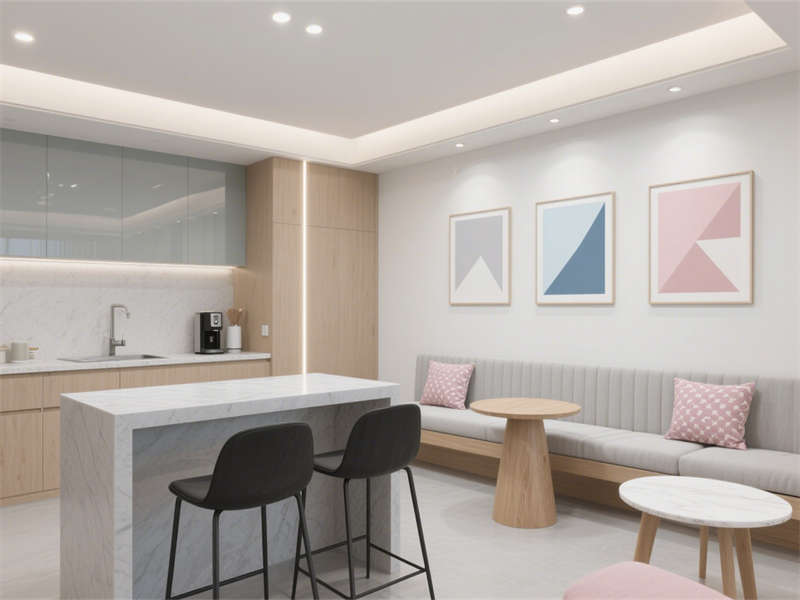 會議室聚焦會議需求,主視覺墻的色彩搭配緩解了會議的緊張感,智能會議屏與充足燈光滿足高效溝通。休閑茶水區作為員工放松的“第三空間”,卡座設計節省空間,色彩搭配活躍卻不雜亂,為員工提供舒適的休息環境。財務辦公室側重隱私與收納,磨砂玻璃設計兼顧采光與遮擋,充足的收納空間滿足財務辦公的特殊需求。儲物間則以實用為主,分區明確,便利的燈光設計提升了使用便捷性,整體保持與其他區域一致的風格,讓整個辦公室成為一個協調統一的整體。