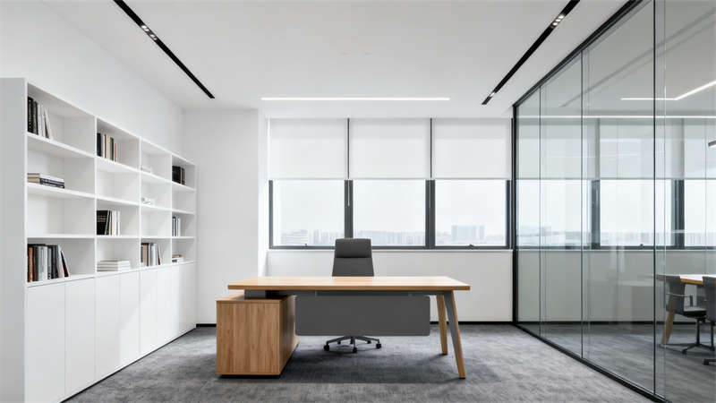 本設(shè)計圍繞現(xiàn)代簡約風(fēng)格展開,整體色調(diào)以中性色為基底,搭配低飽和度的輔助色彩,營造出沉穩(wěn)且富有活力的辦公氛圍,與合肥這座城市兼具文化底蘊與現(xiàn)代氣息的特質(zhì)相契合。?