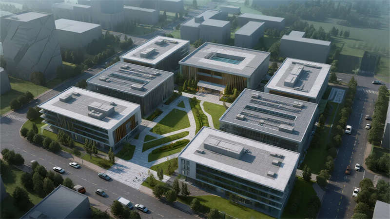 本設計以現代簡約語言重構廠房美學。設計摒棄冗余裝飾,聚焦材料本質——銀灰金屬立面與通透玻璃幕墻形成虛實對比,利落線條切割出幾何體塊,在光影流動中彰顯力量感。廠區布局強調功能與自然的共生:屋頂光伏板陣列呼應綠色生產理念,嵌入式空中花園與竹林連廊為鋼鐵空間注入呼吸感,員工休憩區模糊了工業與生活的邊界。