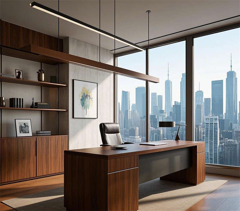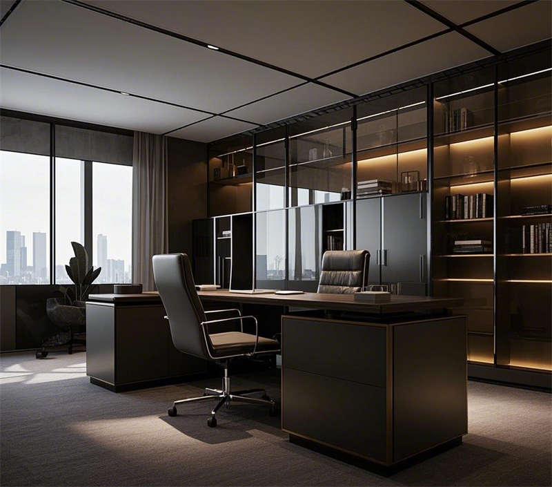 經理辦公室和總裁辦公室均以低調奢華為主,全景落地窗提供開闊視野,玻璃隔斷與金屬材質結合,現代藝術品裝飾,彰顯身份與品味。大會議室配備高端投影設備和環形燈具,玻璃墻面增強通透感;小會議室則采用圓形會議桌,緊湊而溫馨,適合小型討論。休息區設計舒適放松,沙發與吧臺組合,綠植墻點綴,為員工提供輕松交流的空間。