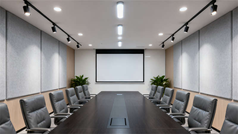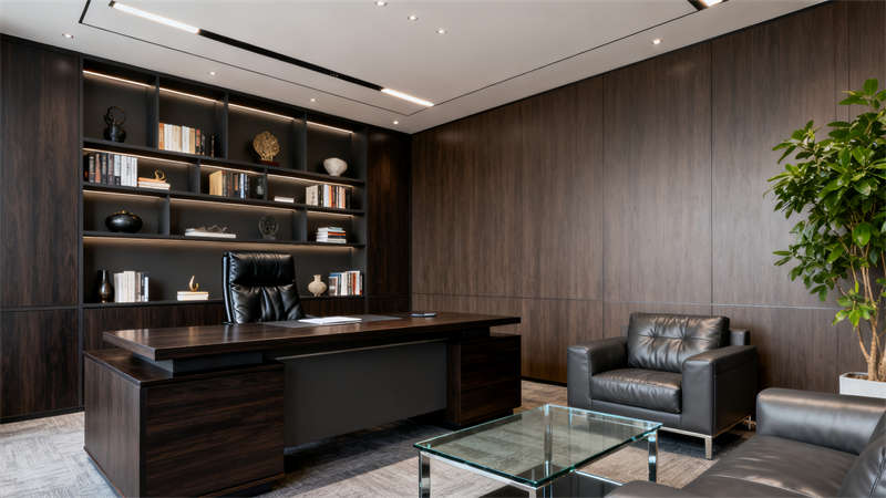 總經(jīng)理辦公室打造獨(dú)立私密的辦公環(huán)境,實(shí)木家具傳遞沉穩(wěn)質(zhì)感,真皮沙發(fā)與茶幾構(gòu)建舒適的接待空間,書架的設(shè)置既實(shí)用又增添文化氛圍。會議室圍繞高效溝通需求設(shè)計(jì),合理的座椅布局與投影設(shè)備搭配,墻面吸音板的運(yùn)用保障音質(zhì)清晰。?