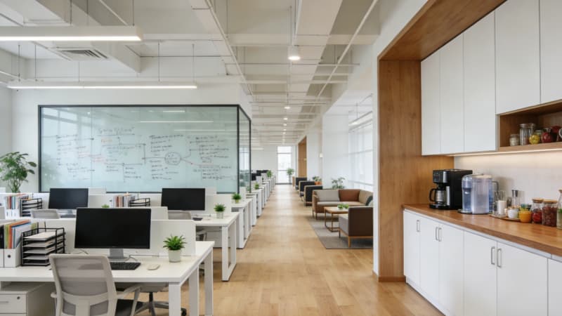 本項目為蚌埠核心區域 10000㎡辦公樓定制設計,以 “現代簡約 + 地域適配” 為核心,融合商務功能與美學體驗,打造高效、舒適且具地域辨識度的辦公空間。整體采用中性色為主色調,白墻灰地奠定沉穩基調,搭配本地實木元素注入暖意,材料兼顧質感與環保??臻g布局靈活,涵蓋開放式辦公區、獨立辦公室、多功能會議室等,適配企業多元需求。綠植選用蚌埠本地適生品種,優化微環境的同時強化地域適配性,為辦公人員營造充滿活力的創作氛圍,助力企業提升辦公效率與品牌形象。