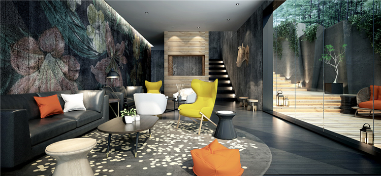 本案度假酒店設(shè)計的重點在于表達人與自然、現(xiàn)代裝飾與自然環(huán)境的融合。每一組家具的設(shè)計、每一個走廊通道的位置,在這里都能感受到時尚與自然,毫不違和。