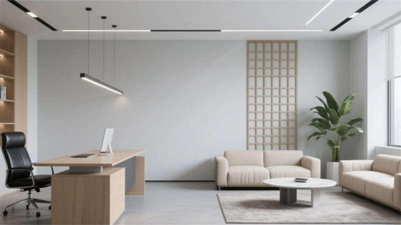 本辦公樓設計以“簡約、高效、自然”為核心理念,采用淺灰、白色與木色為主色調,搭配啞光金屬與線性燈光,構建出兼具專業度與人文關懷的現代化辦公環境。