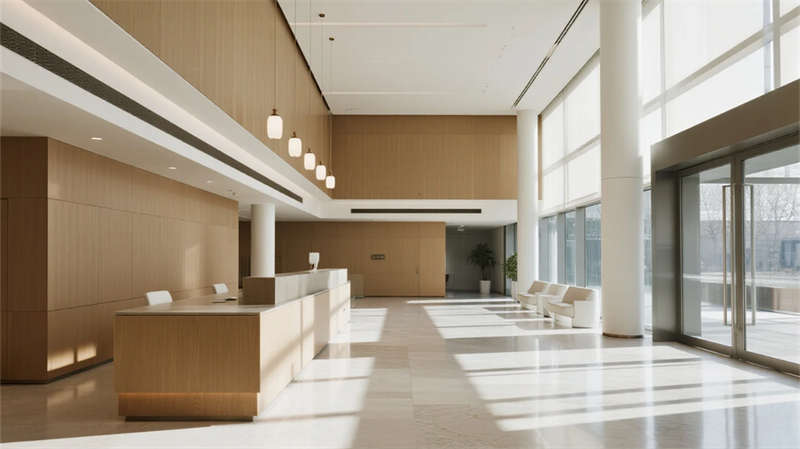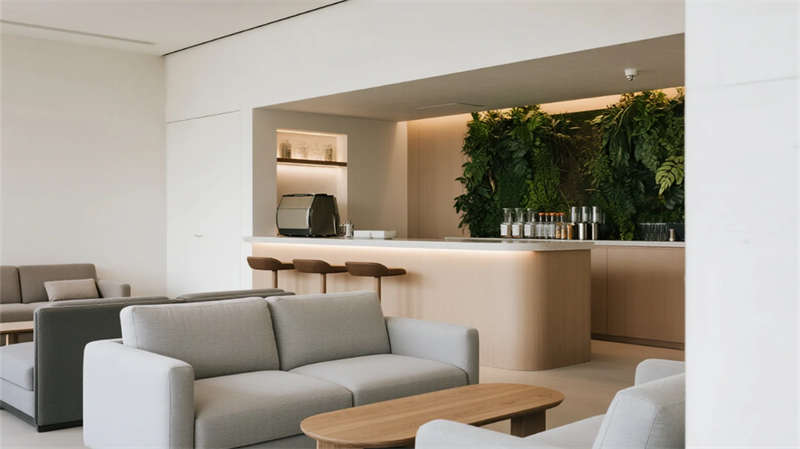 本辦公樓設(shè)計(jì)以現(xiàn)代簡(jiǎn)約美學(xué)為基調(diào),營(yíng)造出寧?kù)o而高效的商務(wù)環(huán)境。建筑外觀(guān)采用純凈的玻璃幕墻與利落線(xiàn)條,在光影交錯(cuò)中呈現(xiàn)輕盈通透的視覺(jué)體驗(yàn);步入大廳,淺色石材與溫潤(rùn)木質(zhì)元素相融,挑高空間與落地窗引入豐沛自然光,傳遞開(kāi)放包容的氛圍。內(nèi)部功能區(qū)布局注重人性化:開(kāi)放式辦公區(qū)以靈活隔斷促進(jìn)協(xié)作,綠植點(diǎn)綴為空間注入生機(jī);簡(jiǎn)約會(huì)議室配備智能設(shè)施,滿(mǎn)足高效溝通需求。員工休憩區(qū)與樓頂花園成為亮點(diǎn)——前者以暖色調(diào)家具打造社交角落,后者則用木質(zhì)平臺(tái)、綠籬與城市天際線(xiàn)共構(gòu)都市綠洲,讓工作者在忙碌之余俯瞰風(fēng)景、釋放壓力。電梯廳與衛(wèi)浴空間延續(xù)統(tǒng)一設(shè)計(jì)語(yǔ)言,細(xì)節(jié)處體現(xiàn)精致工藝。整體設(shè)計(jì)將自然、光感與簡(jiǎn)約哲學(xué)交織,創(chuàng)造一處兼具理性效率與人文溫度的辦公場(chǎng)所。