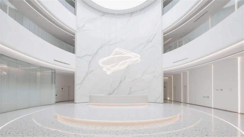 這不僅是容納工作的容器,更是滋養(yǎng)創(chuàng)新的生態(tài)系統(tǒng)。光庭底部的交互裝置實(shí)時(shí)可視化園區(qū)能源消耗,員工通過手機(jī)調(diào)整個(gè)人碳足跡;研發(fā)走廊的觸摸墻可一鍵預(yù)約實(shí)驗(yàn)室設(shè)備,物理空間與數(shù)字系統(tǒng)形成雙生鏡像。當(dāng)晨曦穿過中庭天窗,在懸浮樓梯投下幾何光斑,建筑本身已成為科技精神的朝圣地——這里沒有傳統(tǒng)辦公樓的機(jī)械重復(fù),只有持續(xù)進(jìn)化的空間智能體,在合肥的創(chuàng)新大地上生長(zhǎng)為聯(lián)結(jié)過去與未來的永恒坐標(biāo)。