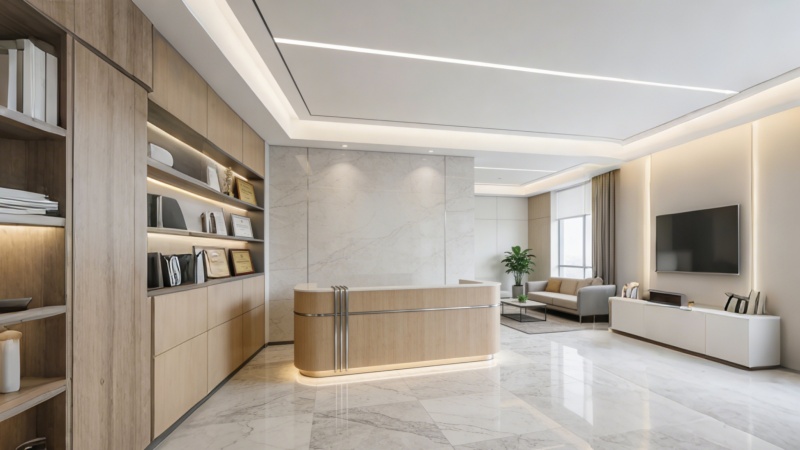 本次辦公樓效果圖聚焦核心公共區(qū)域,以現(xiàn)代簡約風(fēng)格為主,兼顧商務(wù)質(zhì)感與實(shí)用功能。電梯廳整體采用通透化設(shè)計(jì),墻面選用淺灰色啞光石材鋪貼,紋理細(xì)膩且耐臟易打理,搭配金屬線條勾勒輪廓,提升空間層次感。電梯門采用窄邊鋼化玻璃材質(zhì),搭配隱藏式把手,簡約大氣且符合現(xiàn)代辦公審美,門體嵌入柔和感應(yīng)燈光,兼顧實(shí)用性與氛圍感。墻體設(shè)計(jì)注重留白與光影結(jié)合,局部點(diǎn)綴淺色系裝飾面板,打破單調(diào)的同時(shí)不破壞整體商務(wù)調(diào)性。地面鋪設(shè)防滑耐磨地磚,色澤與墻面呼應(yīng),整體空間采光充足,光線柔和不刺眼,既滿足辦公空間的莊重感,又營造出舒適、高效的通行體驗(yàn),完美適配中高端辦公樓的定位,凸顯簡約而不簡單的設(shè)計(jì)理念。