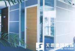 從專業角度來講玻璃隔斷墻因稱為透光模塊隔斷墻,玻璃隔斷中又分單面邊置、單面中置、雙面、雙面帶橫檔、雙面內置百葉簾等多種方式。在玻璃隔斷墻的安裝中,安徽天思建筑辦公