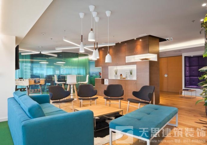 辦公區(qū)域的設計:設計師在設計的時候,采用不規(guī)則的辦公布局,在設計師看來這樣的設計可以各取所長、各補所短,在開放空間布局的同時,為每一個員工打造一個屬于自己的私人空間,不規(guī)則所打造的辦公空間,讓空間充滿了活力。