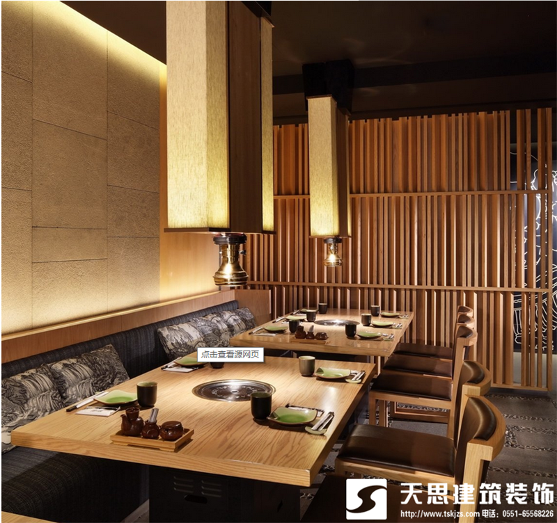 在日式風格的設計理念中,設計師一般比較注重體現濃郁的日本民族特色,在選料上注重質感的自然與舒適,常選擇木格拉門、地臺等元素來表現其風格的特征。 設計師除了保持日式餐廳的傳統風格外,更要增添了一些現代時尚的符號。餐廳內部環境雅致且輕松簡約,布局獨具匠心,散發著東方古樸的異域風情。