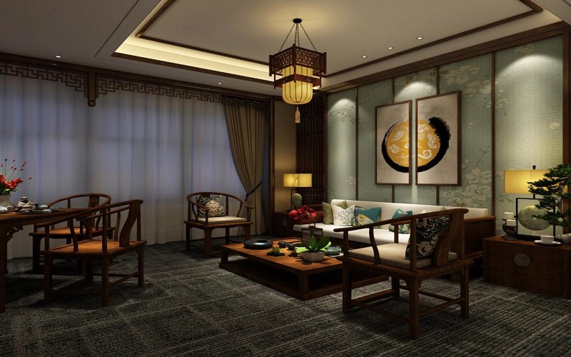 設計師在裝修設計充分考慮了中式元素的性質和特點,使其既滿足其功能和經營特點需求,又兼顧現代技術要求及中式風格.因此在空間的功能、色彩、光影、材料、配飾、綠化等方面都在變化中尋求完美的統一,讓合理的空間格局給人們以美的感受.