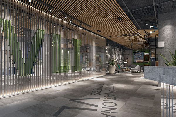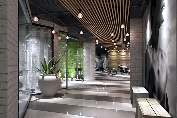 在室內空間中,主色大面積采用大地色(大地灰),不但最具親和力,也能夠讓體能訓練者在運動中逐漸找到運動的節奏,同時可以讓瑜伽類安靜的運動得到一種精神的放松。