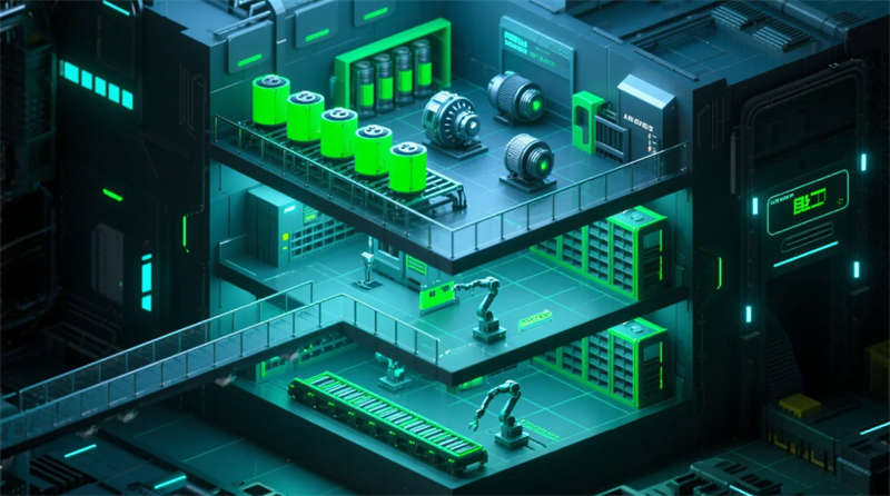 全場景貫穿透明化UI界面與發光網格線,既突顯工業級嚴謹,又以動態數據流強化科技感知,為汽車制造賦予高效、低碳、安全的未來基因。