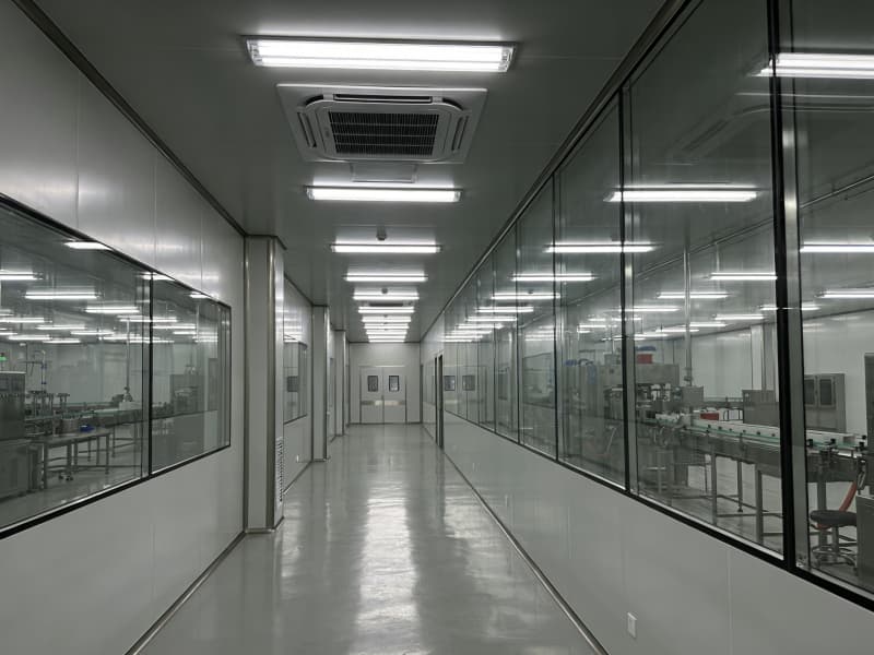走進內部,生產區按照嚴格的GMP標準設計。地面采用無縫、耐腐蝕的環氧自流平,墻壁選用光潔、抗菌的金屬板,便于清潔與消毒。頂部的凈化空調系統與照明設備一體化設計,保證生產環境的潔凈與適宜光照。不同生產工序區域通過透明玻璃隔斷劃分,既保證空間通透,又防止交叉污染。