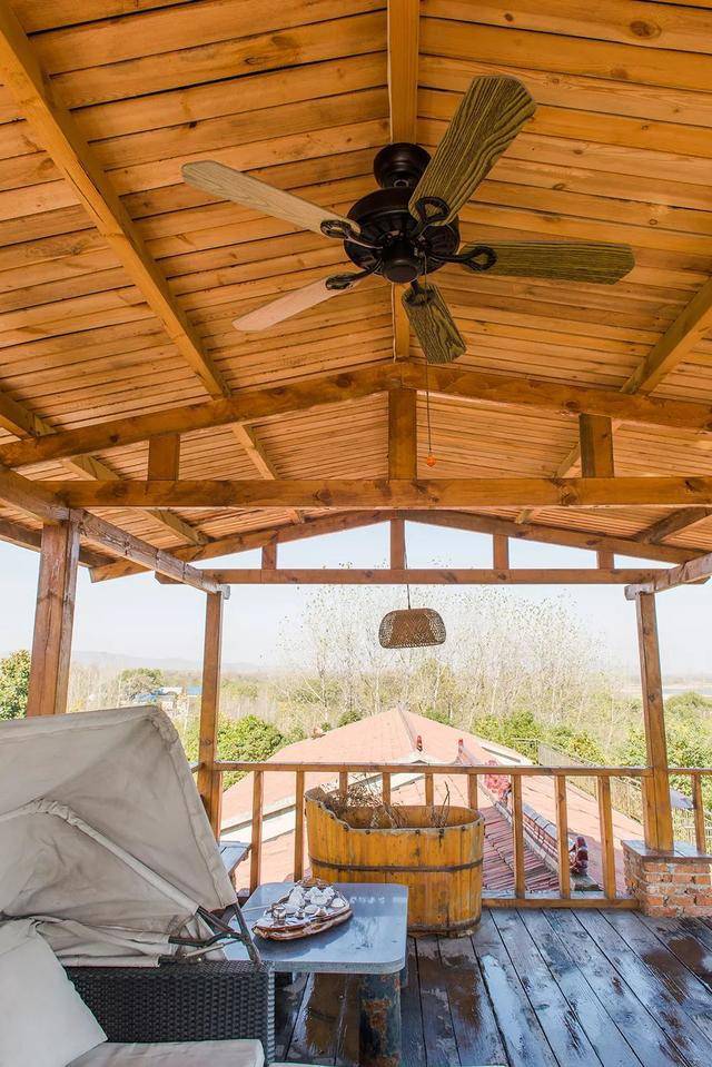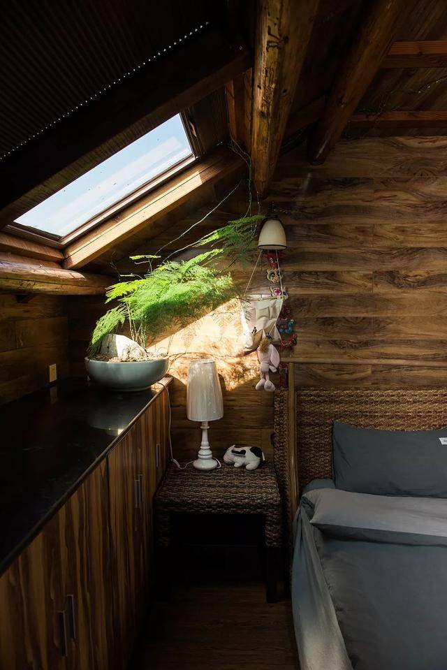 最喜歡三樓的閣樓房間,屋內(nèi)都是木頭裝修的,古樸原始,旁邊就是大陽臺,可以看見遠(yuǎn)處的城西水庫,三樓頂上還有一個(gè)乘涼的棚子,超級漂亮。