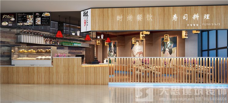 業(yè)主在裝修前跑了很多的裝飾公司,他想打造一個(gè)特色的壽司店,最終他和我們?cè)O(shè)計(jì)師達(dá)成一致觀點(diǎn),通過(guò)努力,大家可以看到一個(gè)具有日韓式風(fēng)格特點(diǎn)的壽司店。壽司店屋頂采用燈籠式的吊燈,帶來(lái)傳統(tǒng)風(fēng)格的優(yōu)雅感。收銀臺(tái)與桌面那里擺放著艷麗的花兒點(diǎn)綴,顯得風(fēng)采艷麗。