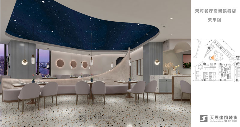 在餐飲空間設計中,照明是營造就餐心理環境的關鍵,無論是什么性質,什么風格的餐飲空間,都有自己的主題。從換位思考的角度出發,在就餐時,自身所在的環境、燈光顏色等都是影響因素。燈光照明起著引導和配合主題的作用,以烘托出良好的就餐環境氛圍,從而映射和改變就餐者的就餐心理環境。