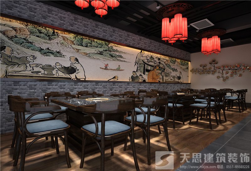 火鍋店是全國上下都喜歡的美食,起源于四川,遍布于全國甚至全球。人們不但在這里享受美食帶來的快樂,同時也開展人際交往、增進感情等活動和作用。讓顧客安全、愉快、舒暢地享受美食的樂趣,享受人際交往的樂趣,是一個裝修公司的重要任務(wù)。天思裝飾擁有多年的裝修施工和設(shè)計經(jīng)驗,專業(yè)化的設(shè)計視角打造特色的火鍋店裝修。在企業(yè)營銷活動中借鑒各類文化因素,有效地豐富餐飲品牌的內(nèi)涵。對于火鍋店的裝修也要花些心思,才能提高餐飲店的鮮明的個性和地域特色。天思裝飾,專業(yè)的合肥火鍋店裝修設(shè)計公司,還提供合肥火鍋店裝修報價和經(jīng)典的火鍋店裝修效果圖,并承接外地的火鍋店裝修設(shè)計及施工。
