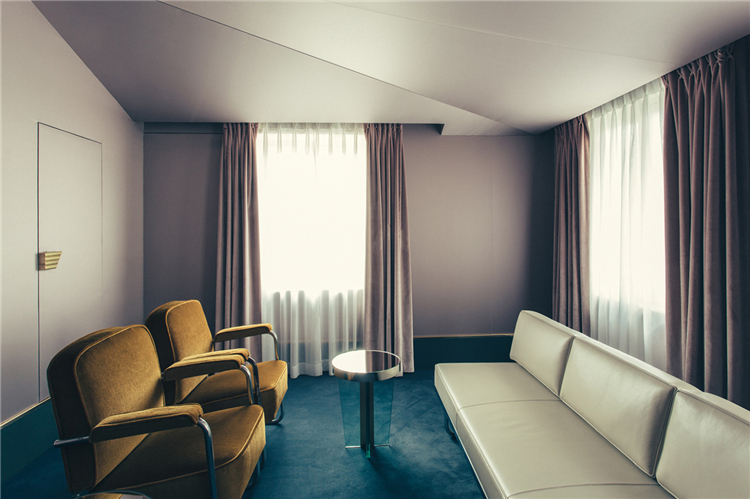 這次給大家介紹的酒店提供25間客房,設想為私人公寓,通過六種不同的場景實現裝飾藝術美學。顏色和面料,從芥末黃到勃艮第紅,森林綠和天藍色成為了工匠制作的藝術和裝飾物的背景。