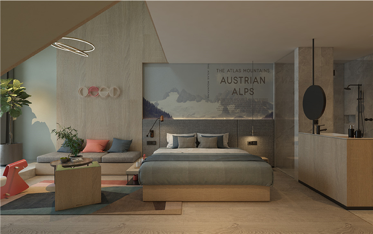 在功能的安排上人性化,為顧客帶來舒適的入住體驗與外立面相呼應,設計師在完整的用材體系上,增加了對比性明顯的色塊,高度提升了空間的趣味性和耐看度。