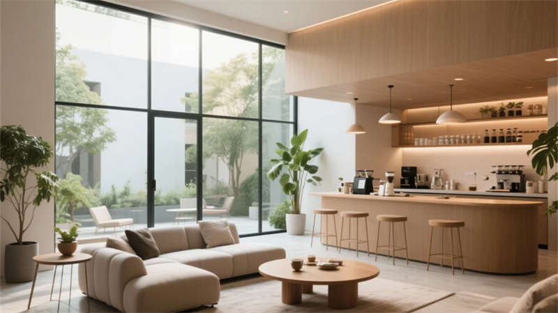 該設計以現代簡約理念為核心,打造一個流暢而人性化的汽車空間。整體采用中性色調和自然材質,如白墻、木飾面和玻璃元素,營造出明亮通透的環境,讓光線自由流動。車輛展廳作為焦點,無縫連接銷售洽談區,通過開放式布局促進互動,同時保持視覺統一。售后服務接待區以簡約線條提升效率感,維修車間則注重實用與整潔,確保功能性與美觀并存??蛻粜菹^融入舒適家具和綠植,提供寧靜的等候體驗,而員工辦公區則強調協作氛圍。備件倉儲區通過智能存儲設計保持秩序,車輛清洗區則運用隱蔽技術實現高效清潔。整個項目強調空間流動性和科技細節,從材料選擇到布局規劃,都致力于提升用戶體驗和品牌質感,讓每個區域在簡約中彰顯專業與溫暖。