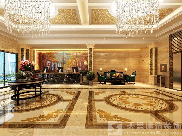 大堂總臺是酒店很重要的區域之一,如果條件允許的情況下,其位置不要對著大門,以便給客戶營造一個相當安逸的空間,同時又能減少過濃的商業氣息。