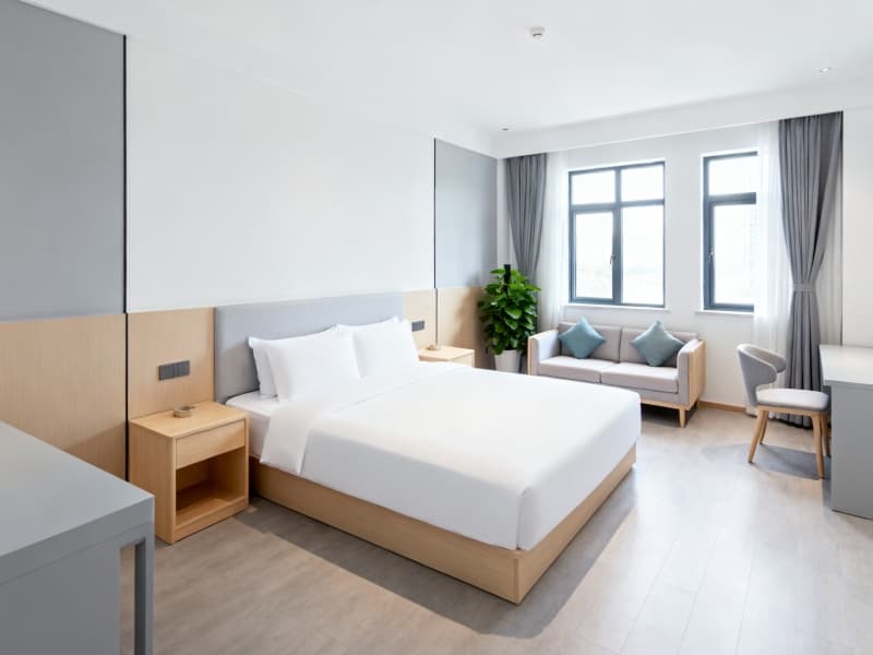 整體設計既符合現代酒店的簡約審美趨勢,又充分適配客人的居住需求,讓2000平的酒店空間不僅具備完善的功能,更能成為客人短暫停留期間的舒適休憩場所,傳遞輕松、自在的居住氛圍。