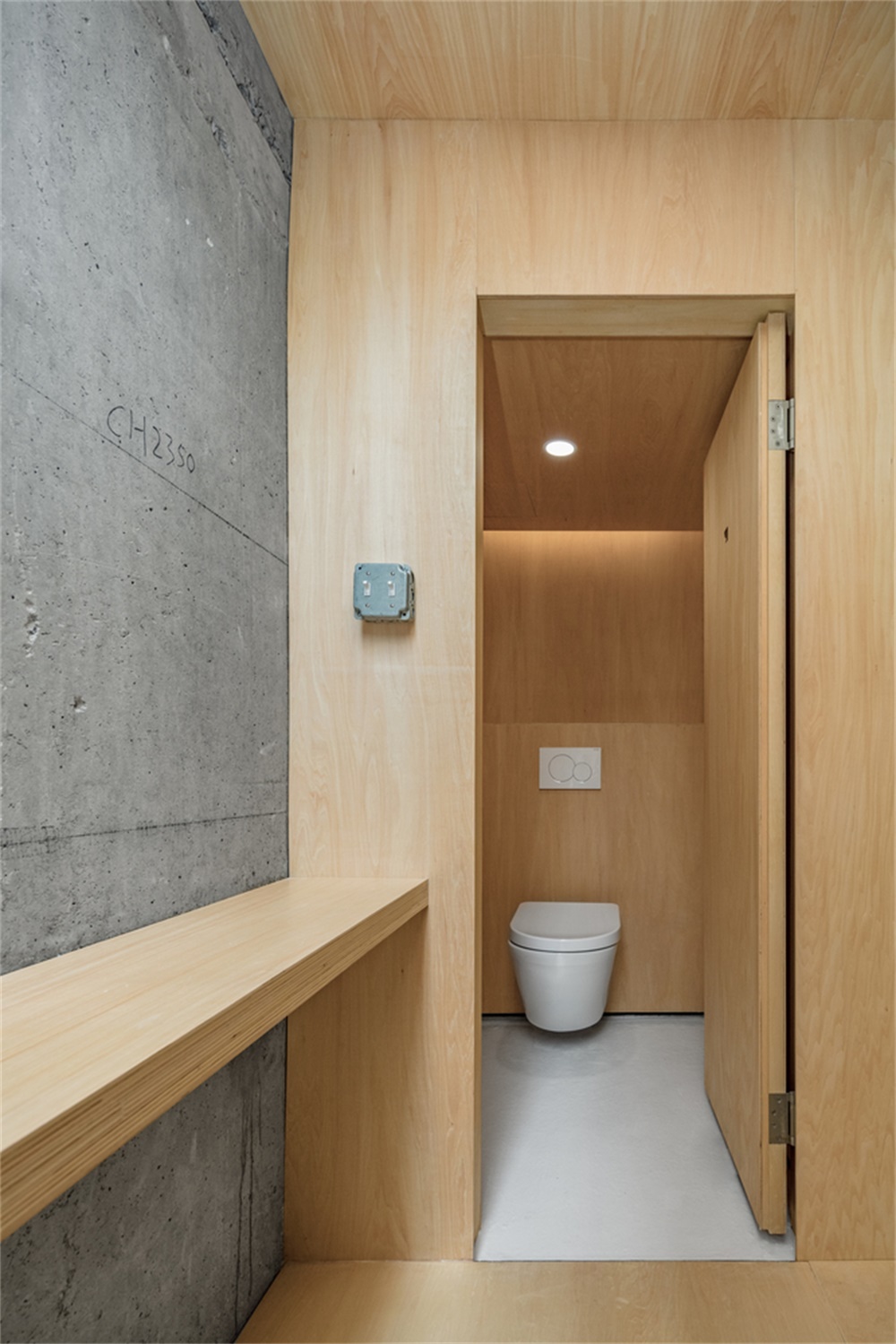 建筑四周圍繞著老式居民樓,為了使其呼應周圍居住環境的氛圍,特意保留了原有立面具有歷史質感的青磚。此外,在外立面的門窗的位置和進深的設計上,結合整個建筑比例和室內布局以數十厘米為單位進行了微調,使得室內視野開敞且采光充足。金屬窗框的更換和進深的加深則為民宿增添了空間浸入感。