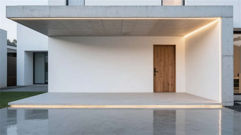 衛浴空間化身立體水景容器,鏡面天花反射青石浴缸與垂吊綠植,形成虛實交織的自然劇場。所有構件皆服務于居者與環境的對話,混凝土墻體在晨昏光線中呈現不同肌理,定制家具的圓弧收邊柔化現代主義的冷冽。