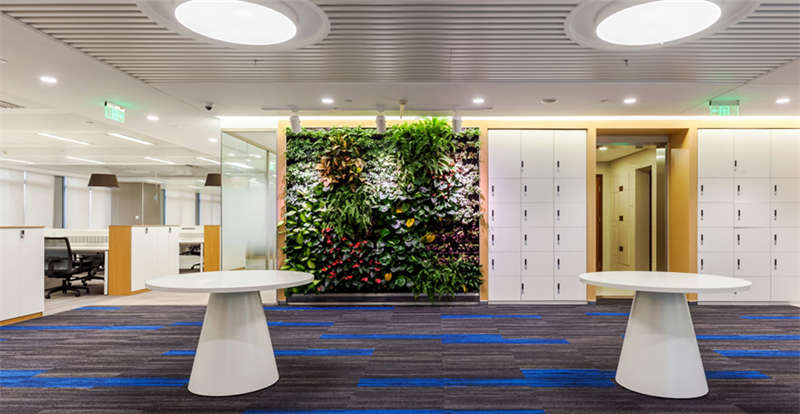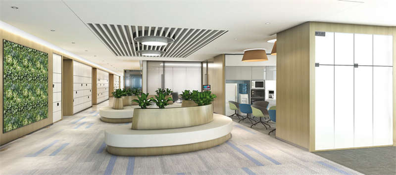 本辦公室裝修項目中,接待大廳,會議中心,以及茶水間和共享辦公處,均安排了數字化的管理和設計。同時打破原來傳統的深色木飾面、奢華花色大理石設計風格,用了淺木色、白色大理石、科技感的陽極氧化鋁板和轉印鋁格柵,整體格調充滿高級感。一些工位設置共享工位,大大提高了工位的使用率。共享工位,可以設置很多的式樣:卡座、沙發、創意工位等,這樣共享工位不僅是工位,還可以是休閑討論區。會議區的模塊化設計,可移動式隔斷,充分滿足員工工作需求,進行合理分割。