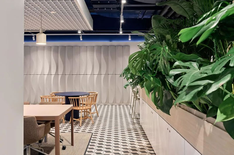 開放協作、動靜相容、靈活多元(寧靜的工作區、舒適的休閑區、開敞多元的社交區和協作區),建立在ABW基礎上的超強適應性空間規劃支持人們多樣化的工作需求。簡約溫馨的配色,加以韻律感的元素重復應用,以及隨處可見的大量綠色植物,讓整個空間在恬靜溫婉中又洋溢著靈動的韻致。