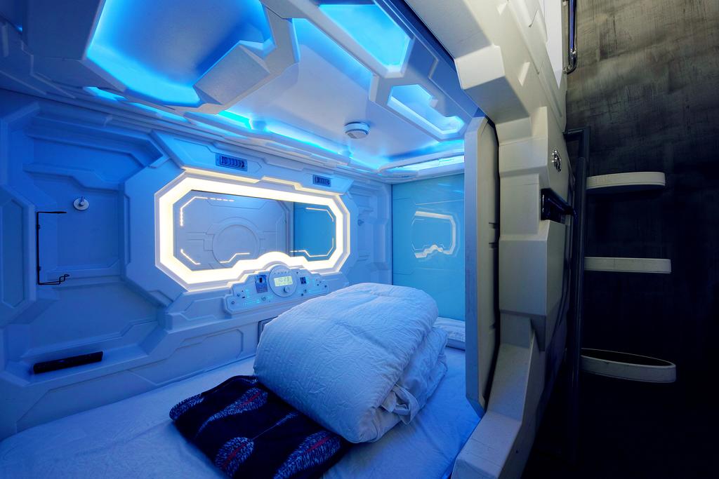旅舍的每間膠囊客房均需要鑰匙卡。床上配有閱讀燈、保險箱和液晶電視。每間客房均配有自動通風系統。共用浴室提供淋浴和免費洗浴用品。