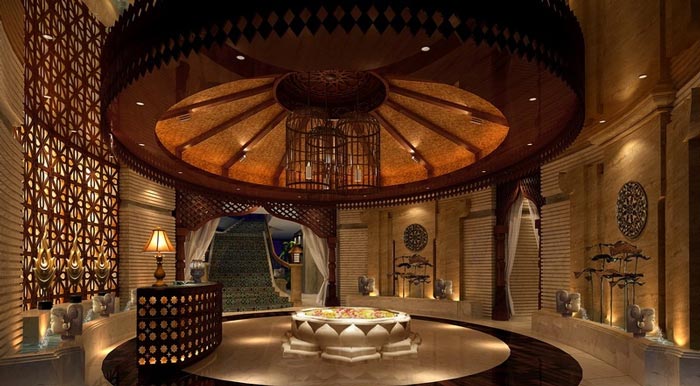在空間及功能上,立體大氣且具有東南亞風情的接待大廳與風格典雅奢華的異域包廂相結合,再巧妙地融入東方獨到著佛教元素,從文化和生活層面傳達出現代人對休閑養生的高品質追求。