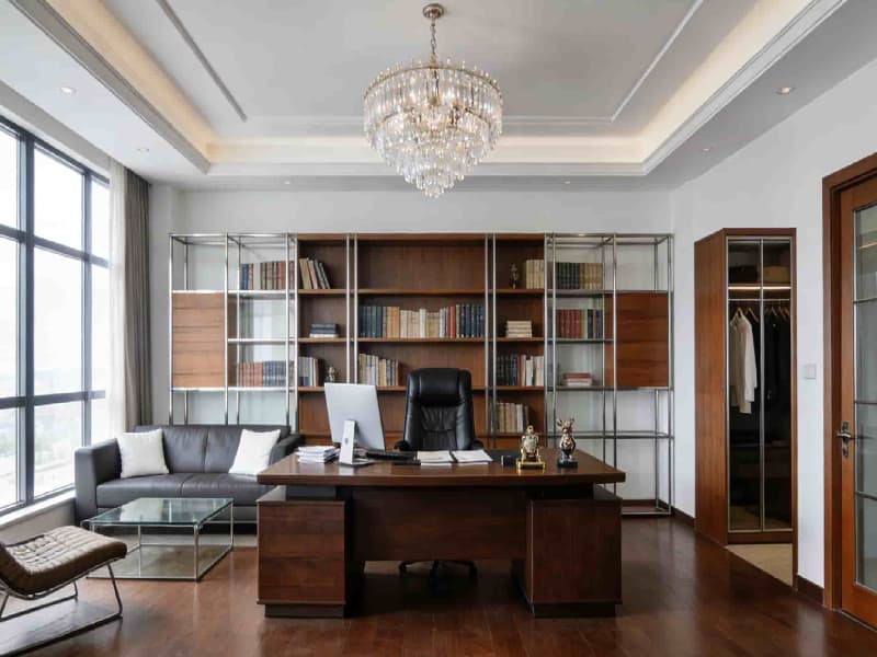 整體空間遵循現代簡約的設計理念,注重功能性與美觀性的平衡。色彩上以白色、灰色為主色調,搭配少量木色和綠色作為點綴,既展現出工業空間的整潔與冷靜,又增添了自然溫暖的氛圍。材料選用上,追求質感與耐用性,如金屬、玻璃、石材和木材等,通過巧妙組合,凸顯現代工業氣息。