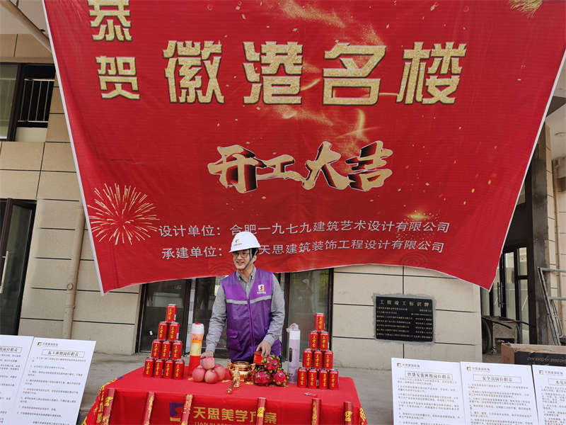 安徽天思建筑裝飾全體員工,恭賀徽港名樓裝修開工大吉,感謝徽港名樓對公司的認可,順祝商祺!