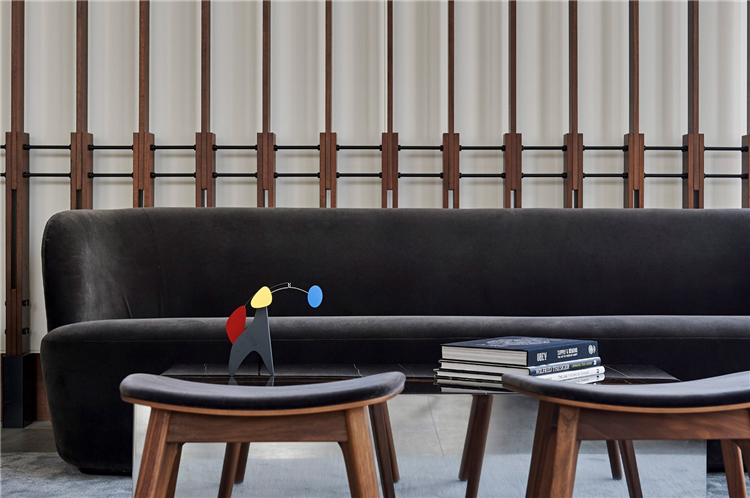 餐廳位于大堂旁邊,由木條幕墻隔開,而不是墻壁,目的是鼓勵人們在兩個空間之間自由移動。“當你走進大堂時,你會注意到餐廳空間和大堂區(qū)域之間的無縫,我們希望人們?nèi)於寄苡行У乩眠@個空間,這樣你就不會覺得自己被封閉在一個特定的區(qū)域里。”