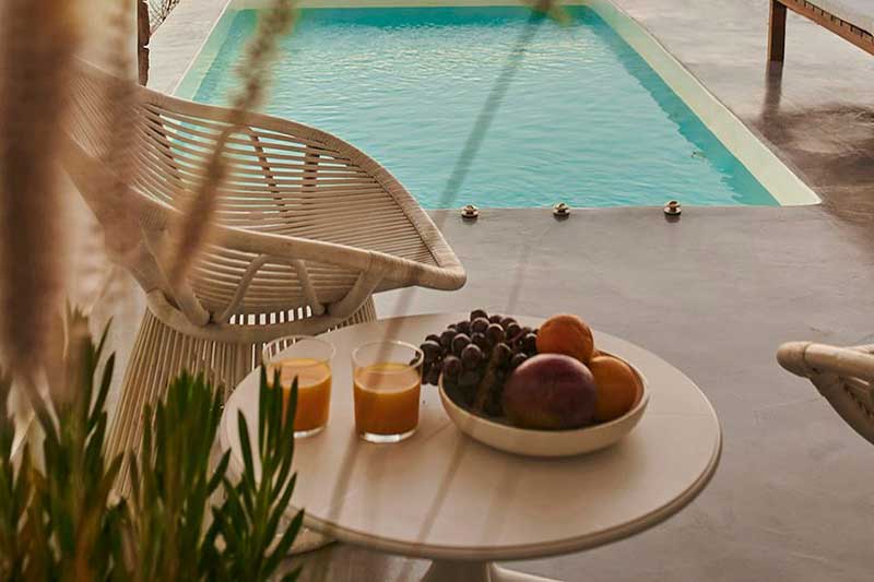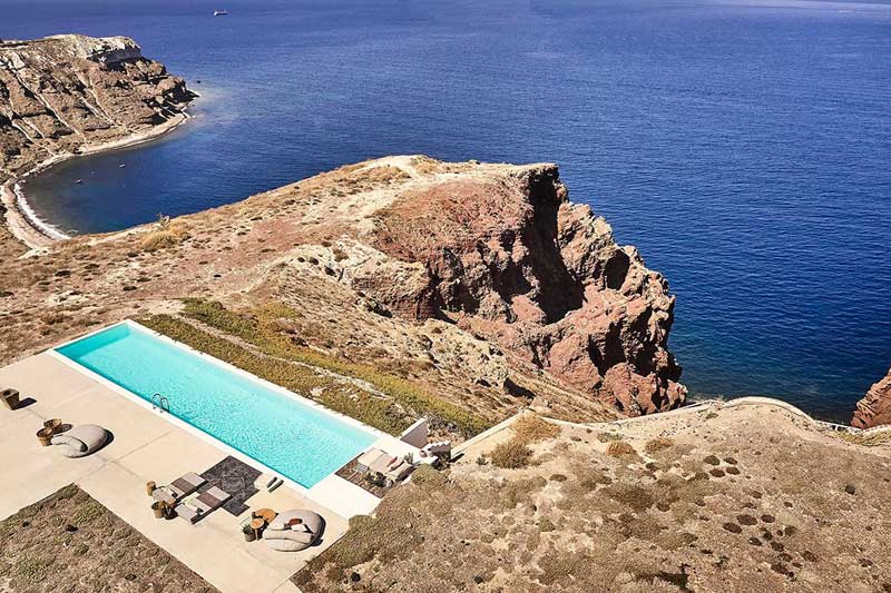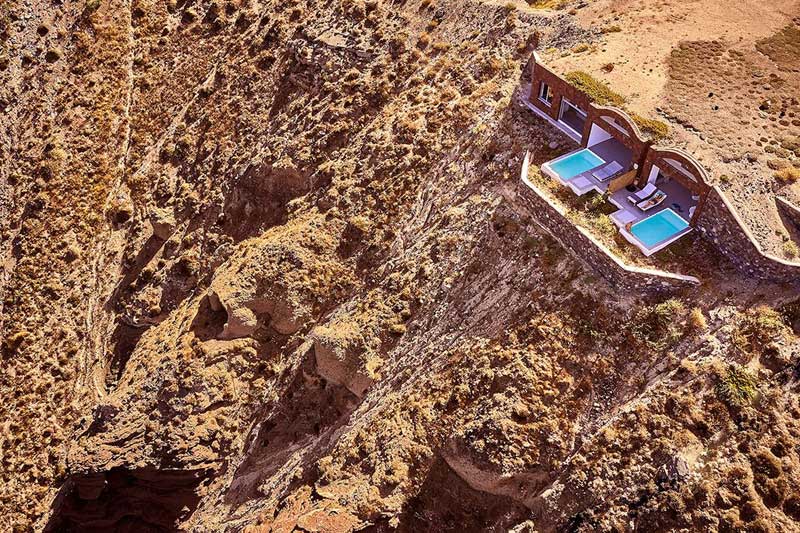 自然生態(tài)度假酒店坐落在圣托里尼島新月形狀的懸崖邊上,預(yù)計于今年5月初開放。在阿克羅蒂里古城附近,游客可以看到來自破火山口附近的碧藍(lán)海水和斑斕陡峭的熔巖層。這片建筑所帶來的與人類密切相關(guān)的體驗(yàn),進(jìn)一步點(diǎn)亮了周邊未經(jīng)雕琢的自然世界。復(fù)古飾品、大地色調(diào)和手工家具裝點(diǎn)了酒店的15間套房,筆直的線條、圣潔的白色與靈活的曲線等典型的圣托里尼建筑元素也在酒店中得以充分展現(xiàn)。在這里,人們可以盡享奢華的希臘式住宿,品嘗當(dāng)?shù)鼐虏穗龋惺軛趹已逻叺娜坝境兀趹敉馍缃恢行膮⒓痈鞣N有益身心的活動。