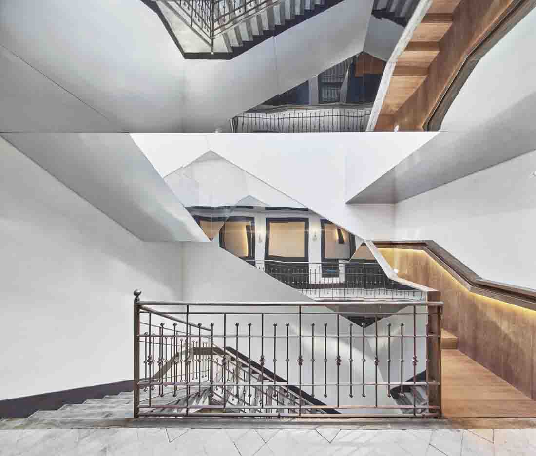 設計師旨在喚起比酒店更多的參觀房屋的經歷。因此,客戶不是在酒店接待處而是在房子的門廳見面;找到的餐廳而不是餐廳,而是找到了居民用餐室,這些房間和客廳就像您在老房子中找到的那樣。該項目精心保留了建筑物中浪漫的氛圍,并與不同時期的干預和元素進行了有意識的對比。這是對現有百年建筑雜交的尊重,它保留了過去的痕跡,并避免了房屋從未擁有過的輝煌過去的錯誤恢復。