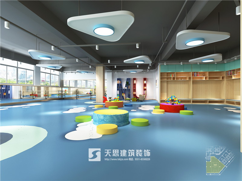 在孩子們的成長過程中,他們通常以不同的方式學習,學校的各種設施和環境應該反映這些特點,因為學校的環境會直接影響教育過程。不管是幼兒園還是早教中心,其設計原則都是:保障安全,無污染、無燥音、適合寶寶活動。在親子教室里,在效果上要達到可愛、溫馨、童趣、簡潔、安全、富有親和力的整體定位要求。