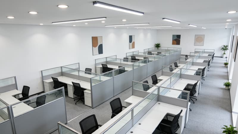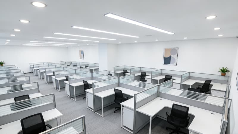 設(shè)計(jì)注重空間的功能性與通透性,無(wú)論是開(kāi)放辦公區(qū)的合理布局,還是獨(dú)立空間的分區(qū)規(guī)劃,都兼顧高效辦公與舒適體驗(yàn)。無(wú)主燈設(shè)計(jì)貫穿整體,柔和的嵌入式燈光與線(xiàn)性燈搭配,既保證照明需求,又營(yíng)造出靜謐沉穩(wěn)的氛圍。綠植的恰當(dāng)點(diǎn)綴,為簡(jiǎn)約空間注入自然生機(jī),平衡辦公的嚴(yán)謹(jǐn)與生活的松弛。