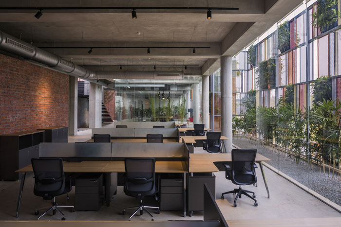 本次為工廠辦公大樓辦公室裝修設(shè)計(jì)效果圖,辦公室設(shè)計(jì)面積4000平方,設(shè)計(jì)師在辦公室設(shè)計(jì)中,以現(xiàn)場環(huán)境保持一致為前提,目的就是打造一個融合與廠房的辦公樓,而不是一個獨(dú)立的裝飾。