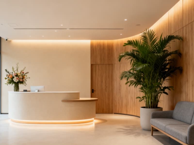 本設計以康養(yǎng)療愈為核心,聚焦休養(yǎng)人群的身心需求,打造兼具醫(yī)療專業(yè)性與生活溫度的4000平空間。整體風格摒棄冰冷的工業(yè)感,以淺米、原木、柔粉等溫潤色調為基礎,搭配柔和的光線與自然綠植,構建舒適安心的環(huán)境氛圍。