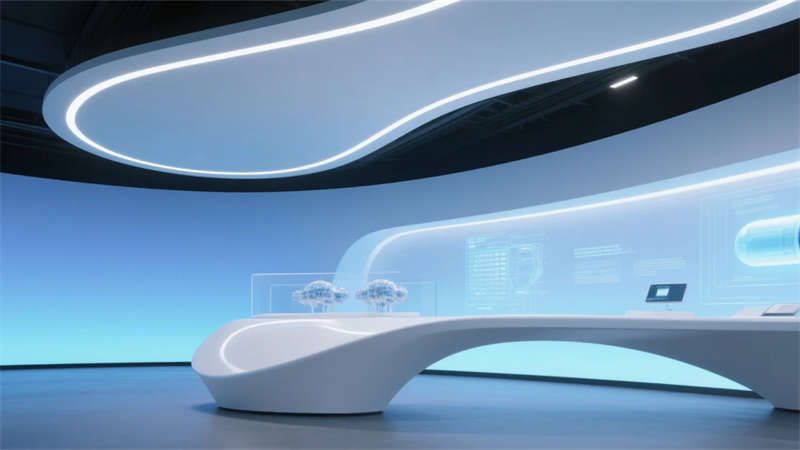 該生物制藥廠展廳設計以現(xiàn)代簡約理念為核心,營造出潔凈、高效的科技氛圍。整體空間運用中性色調與流暢線條,避免繁雜裝飾,突出生物制藥的創(chuàng)新主題。入口大廳通過抽象DNA元素和LED動畫傳遞歡迎感,引導參觀者進入核心展區(qū)。產品展示區(qū)以簡約柜體和信息面板,清晰呈現(xiàn)研發(fā)成果,而實驗室模擬區(qū)則用透明隔間展示設備,強調開放與真實性。歷史長廊以時間軸形式,簡潔敘述行業(yè)演進,互動體驗區(qū)則通過觸摸裝置增強參與性,讓參觀者直觀理解藥物研發(fā)。休息洽談區(qū)融入綠植和自然光,提供舒適交流空間,未來展望區(qū)則以流線型投影展現(xiàn)科技前瞻。整體設計注重功能分區(qū)與視覺統(tǒng)一,材質選擇環(huán)保耐用,如玻璃、金屬和環(huán)氧樹脂,確保空間既專業(yè)又親和。該展廳不僅服務于企業(yè)形象,更成為合肥地區(qū)生物科技交流的亮點,體現(xiàn)簡約美學與實用性的完美融合。